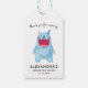 Cute monster design for your child's monster bash birthday party! Illustration of a blue monster with his mouth wide open wearing a party hat. The text above says "thank you for coming!" You can add your child's name at the bottom. The texts are easily editable online.