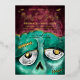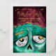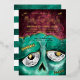 Monster bash Zombie-themed Halloween party real foil invitation design. The design features our own hand-drawn illustration of a close-up view of a Zombie monster's face with brains. "Monster Bash" is displayed in a stylish brush script handwriting in white with the Halloween party details displayed over the Zombie artwork to create a bold and unique Halloween party invitation design. The reverse side features a grungy and rustic green stripe design. All illustrations contained in this bold Zombie Halloween theme invitation are hand-drawn original artwork by Moodthology.