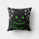 Monster Mashup Halloween with three designs combined into one spooktacular scare. Frankenstein monster zombie, black cat wearing skull mask, cool Jack O Lanterns, and emo art design background in black and white.