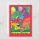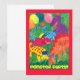 A Party Invitation with colorful monsters, from a watercolour painting by Judy Adamson. The reverse is left blank for you to add the details of the party and I can easily change the front cover text on request through my store.