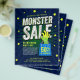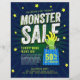 Blue Green Monster Sale Halloween Retail Advertisement Flyer Featuring Green Monster Hand Coming Out Of Shopping Bag. Customise To Your Liking.