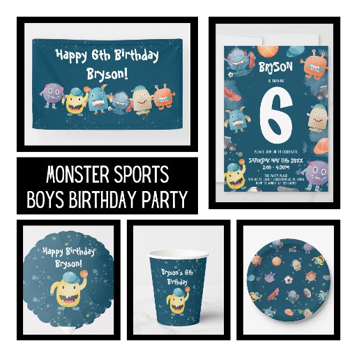 Monster Sports Boy Birthday Party on Teal Paper Plate