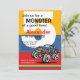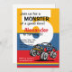 5th birthday design featuring a blue cartoon monster truck with the number 5 on the driver's door. Striped background. Fun for any boy who loves pickup trucks. Customise it with your own personal text. PinkInkArt original!