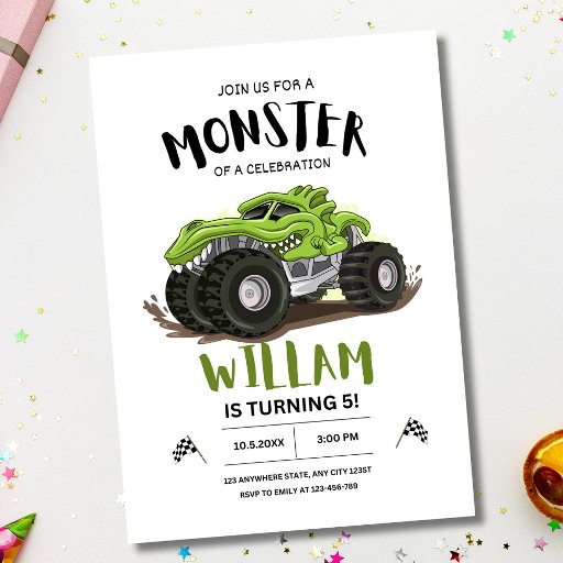 Monster Truck Birthday Invitation, Monster Truck Invite, Monster Truck Party Invite, Boys Birthday Party Invite, editable birthday invitation, Green Monster Truck Invitation, Monster Truck, Dirty 3rd Birthday Monster Trucks, Monster Truck First Birthday Invitation, Minimalist Monster Truck Birthday
