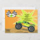 This Monster Truck Invitation is sure to WOW all your invited guests. Bright colours of orange and green are paired with nature browns and black and white chequered race flags. The truck is green with orange to yellow flame detailing. The card is easy to customise with your wording, font, font colour and choice of six paper types.