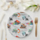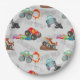 Monster Truck Stunts Watercolor Pattern Grey Paper Plate