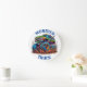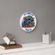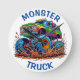 Monster Truck Wall Clock. A vibrant monster truck driving through mud in a cartoonish caricature style, featuring exaggerated and playful expressions, digital illustration with bold colours and whimsical details, inspired by classic 80s cartoons