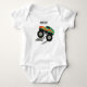 Monster wheels orange, yellow, red, green birthday party baby bodysuit t-shirt.