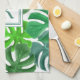 Monstera Deliciosa Leaves Monogrammed Pattern Tea Towel