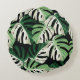 Monstera Leaf Exotic Black Pattern Round Cushion