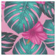 Monstera leaves and Hibiscus Teal and Pink on Pink Fabric