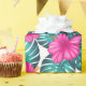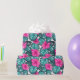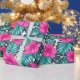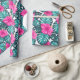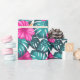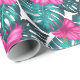 Monstera Leaves and Hibiscus, Teal Pink on White Wrapping Paper