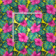 Monstera Leaves and Hibiscus, Teal and Pink on Yellow. Digital watercolor drawing. Please check out my designs for more colour variations of this pattern. Thank you :)
