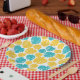 Monstera Leaves in Turquoise, Yellow, and White Paper Plate