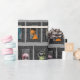 Whether you need to wrap up a scary present or just have a zombies fan on your shopping list this frightening wrapping paper is a perfect choice. It features nightmarish portraits of zombies in blue, orange, yellow, pink, beige and green in black frames set against a grey background.