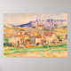 Mont Sainte-Victoire and Hamlet Near Gardanne. Paul Cezanne. Nice landscape in warm colours. A small town in a mountain valley. Mostly bright houses under a red roof. There is a field in front of the city. Mountains in the background. Pale blue sky. Reproduction of famous works of art images in the public domain.