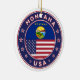 Badge of Montana with flag of Montana and flag of USA colors, rounded shape.