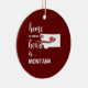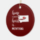 Montana home is where the heart - in mixed script and uppercase white font with the silhouette of the state boundaries and a red heart. Set on deep Christmas red. Personalise with your name or message in white font on one side of the product.