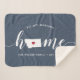 Show some home state pride with this cute rustic blue throw blanket featuring "home" in white calligraphy script lettering with a silhouette map of the state of Montana standing in for the letter "O." A red heart illustration inside the state map completes the design; you can change the position of the heart to your home city by opening the design tool and dragging the heart shape to your favourite spot. Personalise with your home city, family name and year established to create a perfect and memorable housewarming gift or addition to your new home.