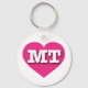 This key ring features a vibrant hot pink heart containing the bold, white. upper case letters MT, the official abbreviation for Montana, the treasure state.