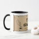 Advertise your notary public business with style and pride. Makes a thoughtful and practical gift for any notary professional who provides legal services to the public. This pen and parchment roll design is presented over a tan scroll papyrus background. Elegant feather quills and ink pots anchor each end of the document. Coffee mug is easily customised by changing "Montana" to a name, city, phone number, or any other text of your choice.