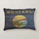 Montana State Flag on Old Wood Grain Decorative Cushion