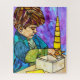 Perfect for a Montessori child or teacher, this puzzle features the artwork of South Carolina artisan and AMS certified teacher, Amy Kuhl Cox. The child depicted is completing the yellow set of Knobless Cylinders, a popular material in a Montessori Primary classroom. Amy works from photographs to draw the black lines with Micron markers. Amy curves each corner when the lines intersect so that the lines become the simulated "leading" of stained glass. After scanning the drawing, Amy uses the computer to "paint" in the textures of stained glass into each section of her drawing.