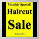 Something for everyone offers customised personalised haircut sale poster especially designed to promote and market your business. This uniquely designed haircut sale poster will not only bring a smile to your clients but they will also enjoy telling their friends about it. As a licensed cosmetologist I know firsthand the importance of promoting a salon, therefore it is wise to continuously change and market your shop as your clients’ needs increase. Happy promoting everyone…Good luck!