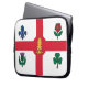 Montreal flag laptop sleeve, Canadian city tech accessory, patriotic Montreal case, multicultural flag laptop cover, Montreal city emblems, Cross of Saint George sleeve, fleur-de-lis rose shamrock thistle, symbolic laptop protector, stylish Montreal gadget cover, city pride computer sleeve, Montreal themed tech gear, laptop pouch with Montreal flag, iconic Canadian flag design, civic pride electronics case, laptop sleeve for Montrealers, Montreal heritage design case, Canada flag laptop accessory, flag-inspired laptop bag, padded sleeve with Montreal design, Montreal culture laptop sleeve