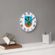 The clock did not take as long to arrive as I thought it might and was extremely well packaged. I didn't do the measurements so I didn't realize it is a little smaller than the average clock but that does not matter (just make sure you check if that's important to you).It is really nifty! It seems very solid and well made not flimsy at all. It has been going well and has kept good time in its few weeks on my wall. Nice product. Gets noticed too! Nicer in real life than the picture but true to the picture