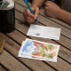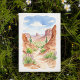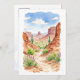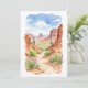 This postcard features a watercolor portrait of Monument Valley on the Arizona Utah border.