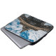 The sleeve is made of nice feeling material and seems very durable. I'm not sure how easy it'll be to clean, but the construction seems sound and the fabric is quick thick. I also like the double zipper. The printing is lovely and appears durable. The white on black contrast is nice, and the design very elegant.