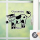 Black and white cow eating flower, to personalise by changing to your name on any background colour