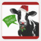Moo rry Christmas! Funny Holiday Cow in Santa Hat Square Sticker