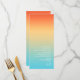 The background for the pieces in this minimalist wedding set is an eye-catching gradient of colours from tangerine orange through butter yellow to turquoise. The wedding menu card shown here features a sleek, modern layout and contemporary sans serif font to add to it's appeal. Easily add your menu selections, initials and wedding date using the provided template. Search ID741 to see the complete set of matching products in Tropical Sky or choose one of the other available gradient combinations to suit your wedding colour palette.