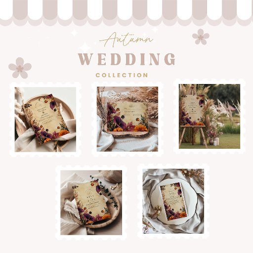 Set the tone for a bold and romantic fall celebration with this moody floral wedding design. Featuring deep plum calla lilies, burnt orange blooms, and warm vintage tones, it's perfect for an elegant autumn ceremony. Fully editable with your details.