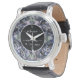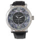 A bold and sophisticated Wedding Watch featuring dramatic dusty blue and grey floral illustrations against a stark black background. The crisp white typography and classic layout set an elegant, moody tone. Perfect for a formal evening or a sophisticated wedding.