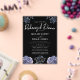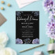 A bold and sophisticated Rehearsal Dinner Invitation featuring dramatic dusty blue and grey floral illustrations against a stark black background. The crisp white typography and classic layout set an elegant, moody tone. Perfect for a formal evening or a sophisticated wedding.