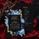 Set the stage for a hauntingly elegant event with this gothic all-in-one invitation. A lush and luxurious floral wedding invitation featuring a frame of black and red peonies and blue berries against a black background. The back of the invites features the wedding details. It is perfect for a dramatic and unforgettable celebration. They are ideal for lovers of dark romance and timeless allure.