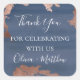 Moody navy blue watercolor with faux metallic copper leaf, personalised wedding favour thank you sticker. Designed to match our Moody Blue Copper Wedding Collection.