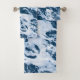 This bathroom towel set features a stunning photograph of moody blue ocean waves, perfect for a nature lover or seaside home.