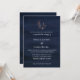 Modern elegant rose gold branch on midnight blue watercolor background wedding invitation. Personalise text, font style, colour and size.