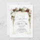 Set a romantic tone for your celebration with this stunning watercolor invitation. Featuring a draped ceremonial arch adorned with rich burgundy roses, white anemones, and soft blush florals, this design is perfect for a couples shower, engagement party, or garden wedding. Its elegant script and airy layout bring a sophisticated, bohemian touch to your special event.