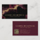 This dark, moody modern business card features an alcohol ink and faux glitter abstract painting in burgundy and gold. Personalise it with your name in chunky gold-coloured serif font and your business information in sans serif font. The back of the card features gold-coloured text on a solid deep burgundy background, along with a QR code that directs customers to your business website.
