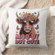 A adorable highland cow with flowers and butterflies. Typography of Moo-dy But Cute. Background color can be added.