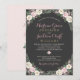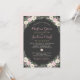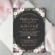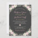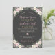 This wedding invitation features a deep charcoal background framed with romantic blush and ivory florals and soft greenery. Elegant script names paired with clean serif typography create a modern-romantic look that feels perfect for fall and winter celebrations. Ideal for couples who want moody florals with timeless type. Wedding invitation.