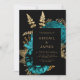 Moody Dark Floral Turquoise Gold QR Code Wedding Invitation