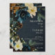 Moody Elegant Winter Blue Floral Pine Wedding Invitation