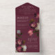 Make a dramatic first impression with this moody floral all-in-one wedding invitation featuring rich burgundy, blush, and ivory blooms set against a deep black background.