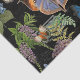 Moody black Cottagecore style (scaleable) design for decoupage, created from vintage botanical watercolor drawings and paintings in a half drop repeat pattern. You can make it larger or smaller to fit your creative needs. Elegant wildflower floral in pastel colours of blue, lavender, purple, pink and white flowers with gorgeous butterflies, dragonflies and leaf foliage greenery pop off the dark, rich black background.  Antique script handwriting ephemera adds an vintage touch.  Created by internationally licensed artist and designer, Audrey Jeanne Roberts ©.